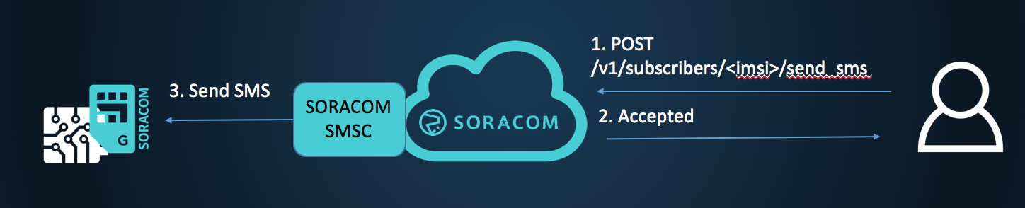 There’s still no silver bullet, but there are some known best practices, including what we usually describe as “SMS wakeup.” For devices connected to cellular networks, an SMS message can be used to trigger wakeups and provide additional commands to instruct a device on what to do and where to connect after waking. This is supported in the Soracom API and is often implemented by customers as shown below.
