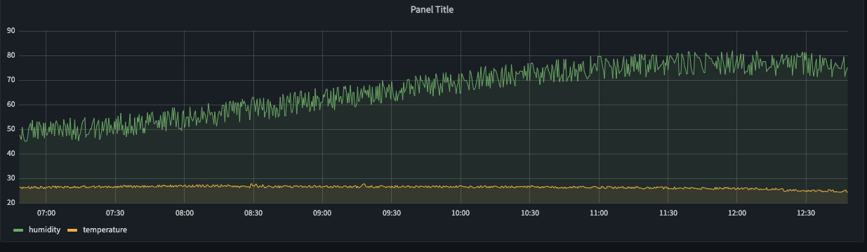 Here is a sample Lagoon dashboard that displays humidity and temperature readings over a period of 5 ½ hours. Based on these results, we can see that the temperature remained consistent but the humidity gradually increased. Necessary action should be taken to reduce the humidity back to a more uniform level, such as setting up a dehumidifier in the shop.
