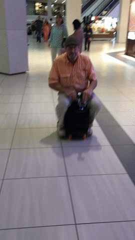 If you own both MODOBAG and COWA’s Robotic Suitcase, then you can ride on the luggage and the suitcase follows you.