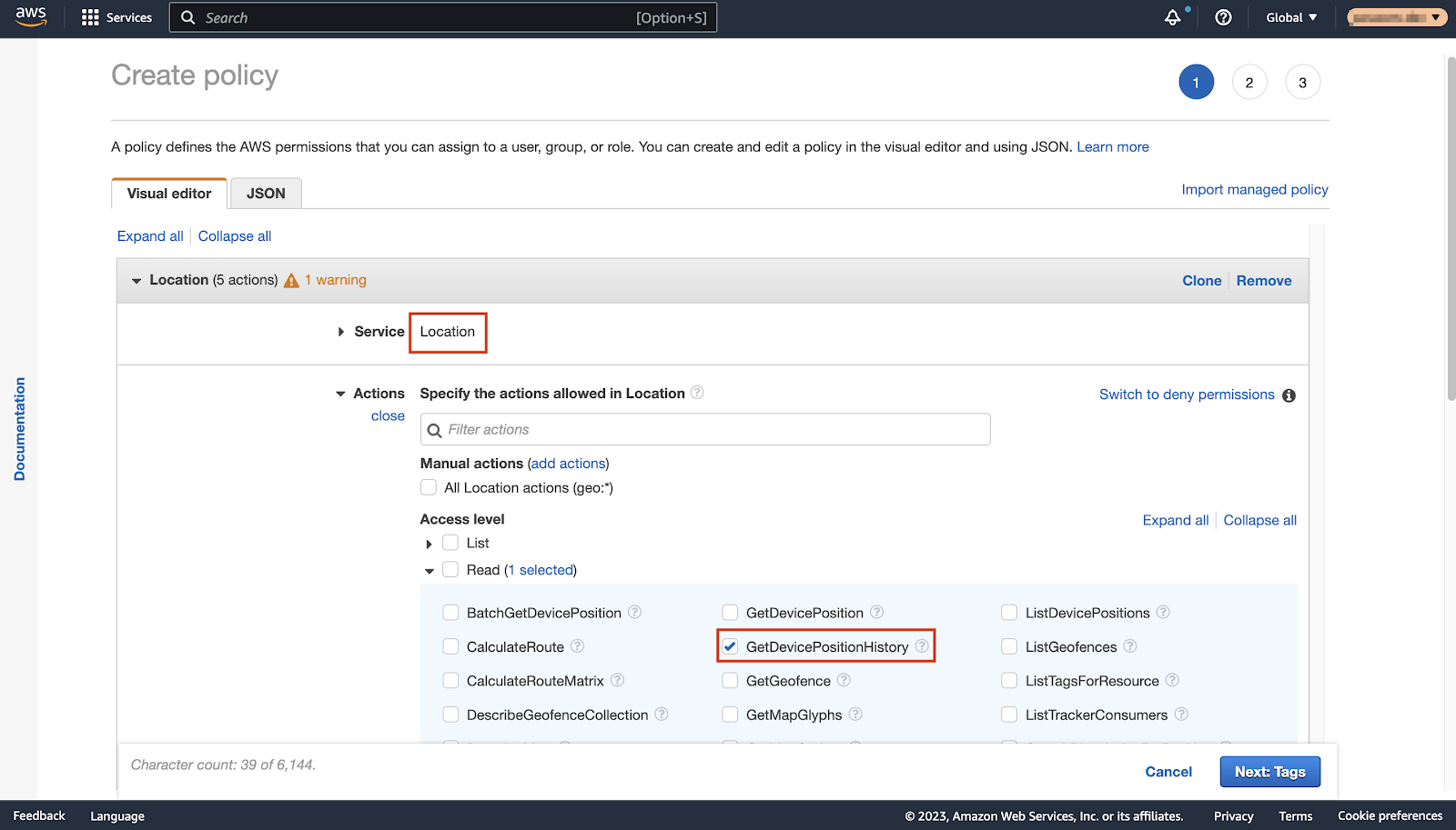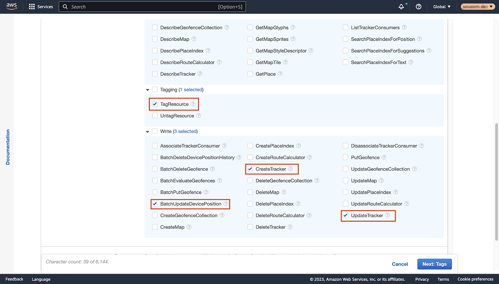 Enter the ARN of Amazon Location Services (e.g. arn:aws:geo:ap-northeast-1:XXXXXXXXXXXX:tracker/*) in [Specify ARN of Location tracker] and click [Add].