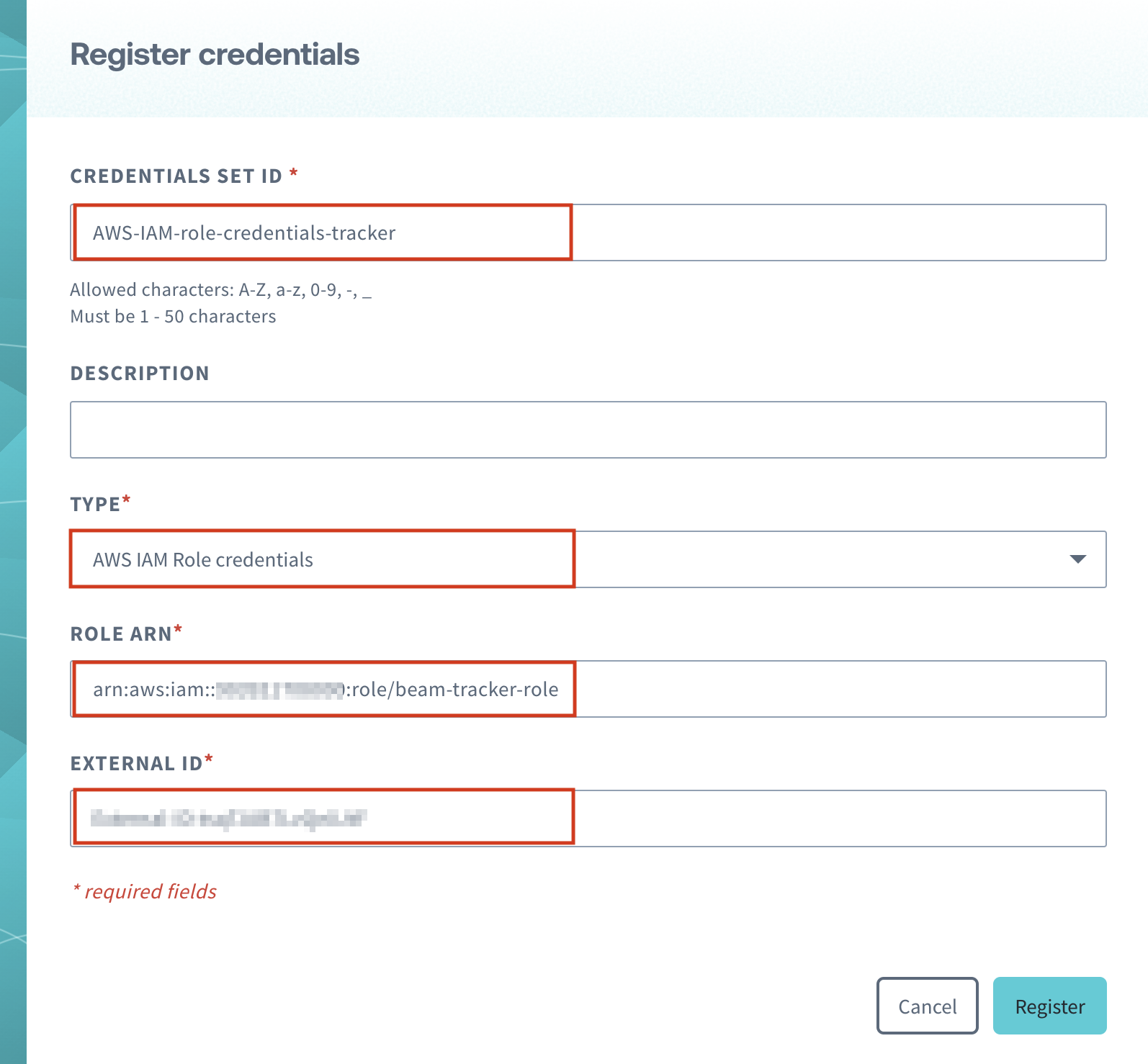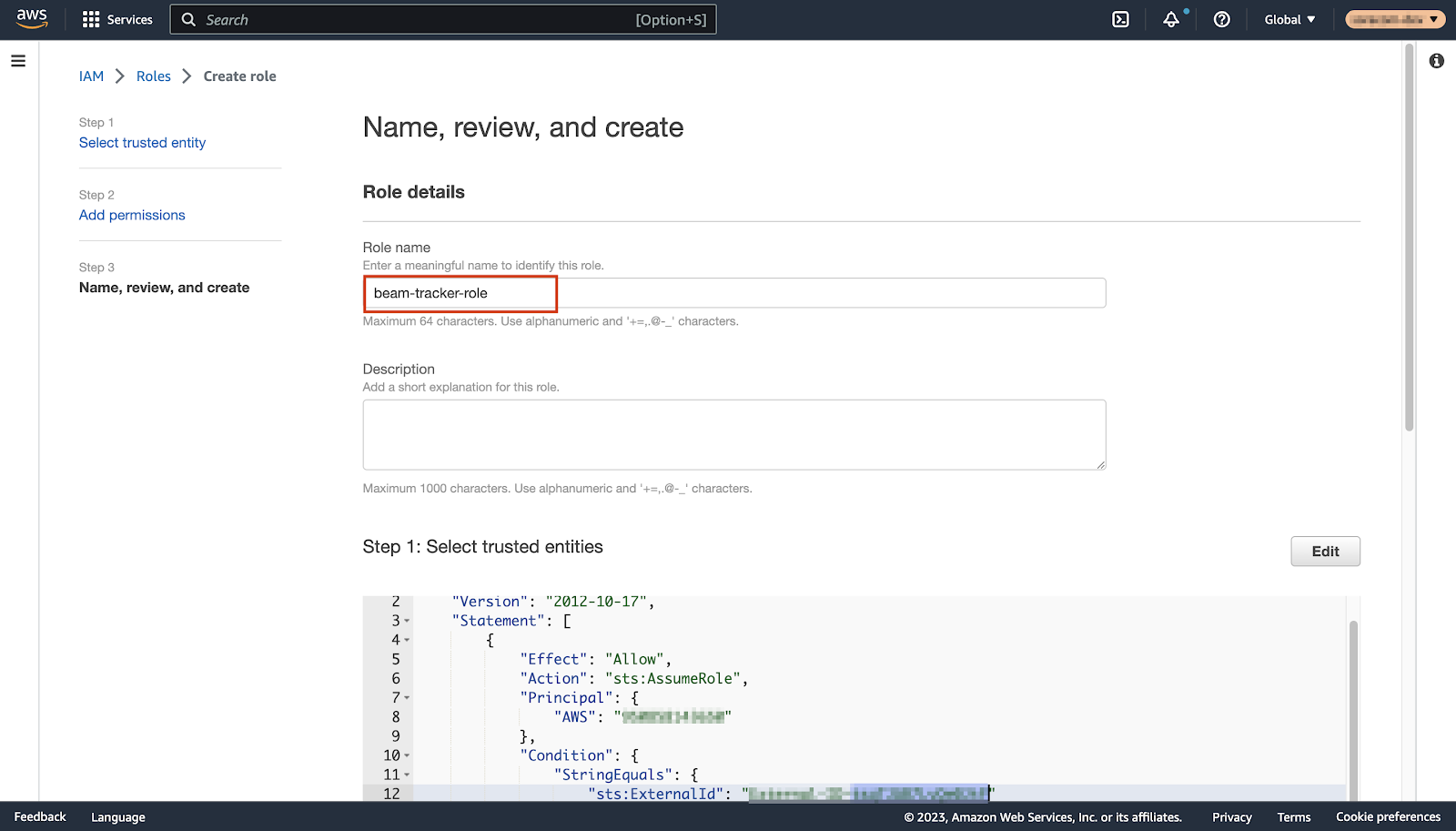 [Role ARN]Enter ${iam_role_arn}. Example:arn:aws:iam::XXXXXXXXXXXX:role/beam-tracker-role