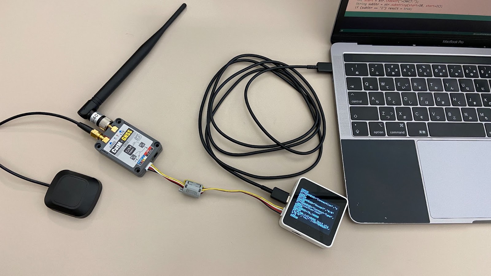 device.sendMsg(“{“str”:”Hello Soracom! from CAT-M/NB-IoT+GNSS Unit via LTE-M”,”val”:1}”);