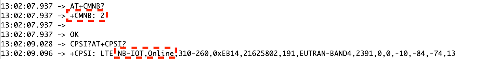 These strings show that it is connected to the NB-IoT network properly.