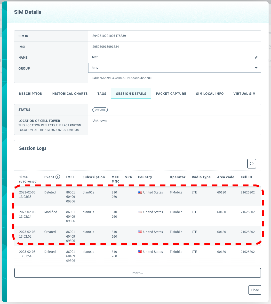 • Event “Modified” indicates that your device changed to NB-IoT from Cat M.