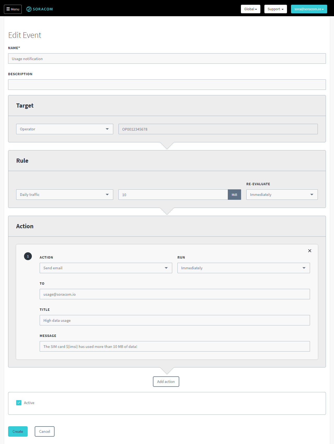 We’ve always intended to make the full UI available from within the User Console, and we’re happy to announce today that you can now fully configure the Event Handler directly from within the User Console. (Though you’re still welcome to use the API if you prefer, or even the old UI, which you can find at https://console.soracom.io/#/event_handler if you’re signed in.)