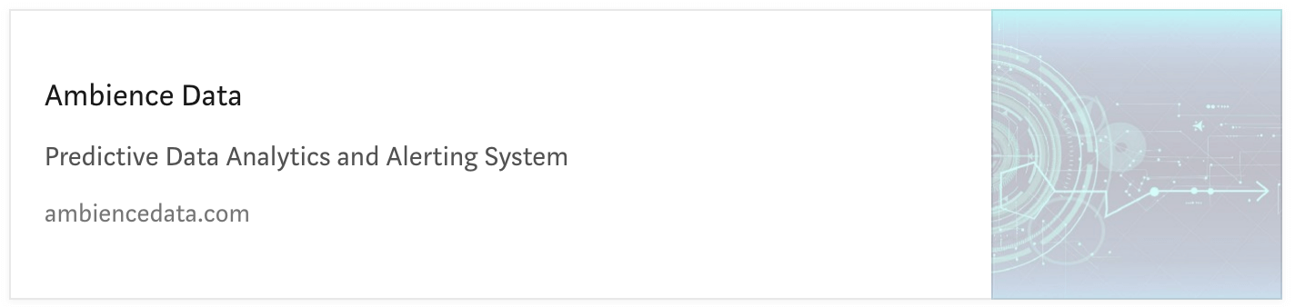 Ambience Data is a software data company that uses a sensor agnostic end-to-end IoT platform to monitor and collect data using our hardware devices.