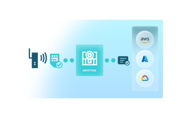 Devices authenticate using the onboard SIM, creating a trusted identity without embedded secrets or certificates. Krypton uses this identity to request and deliver cloud credentials securely.