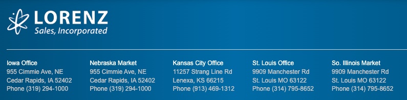 Lorenz Sales provide sales growth and revenue in the Midwestern states of Iowa, Nebraska, Missouri, Kansas and Southern Illinois. We are contracted sales agents providing all of the services of a direct sales force, on a commission basis. We employ technically trained, highly ethical salespeople, with the purpose of increasing revenue and fair profits for both the manufacturers we represent, and the customers to whom we sell.