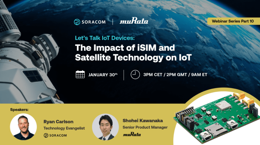 Based on the innovative Murata Type 1SC module, this iSIM EVK leverages Soracom’s global connectivity profile. It eliminates the need for a physical SIM card and makes it easy to access LTE-M and NB-IoT coverage globally.