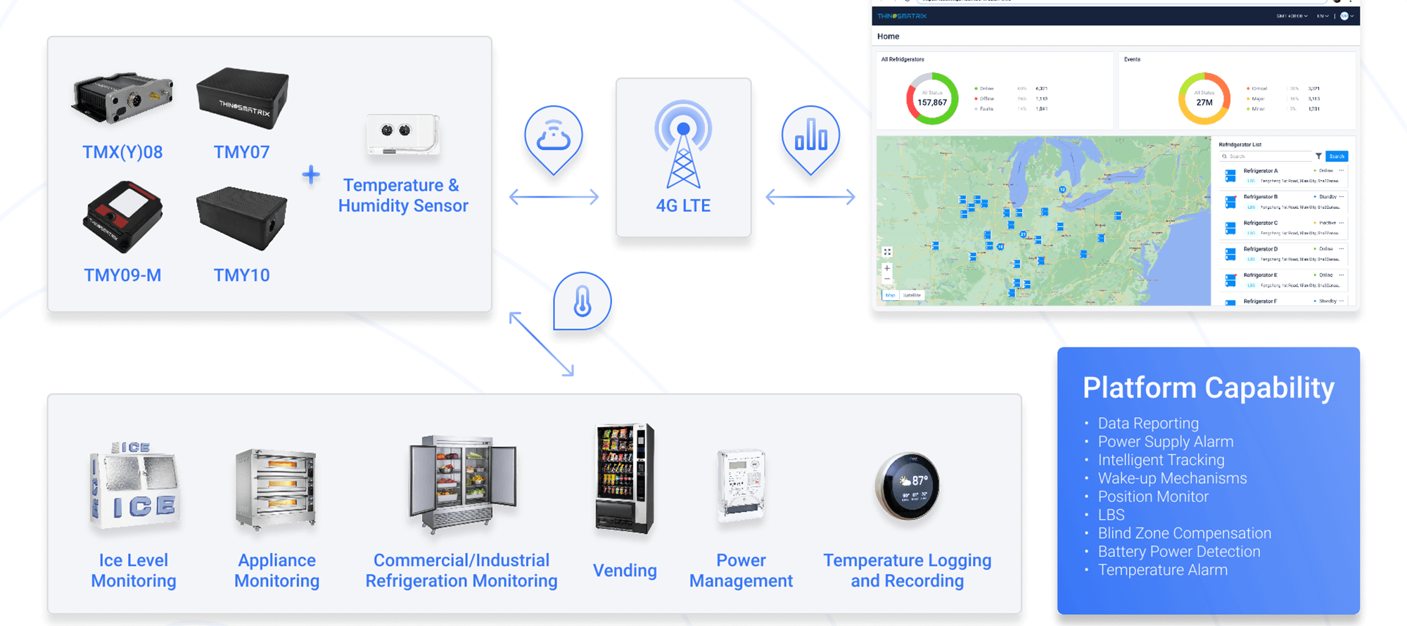 The ThingsMatrix platform provides the following capabilities for Cold Chain & Logistics tracking usecases: