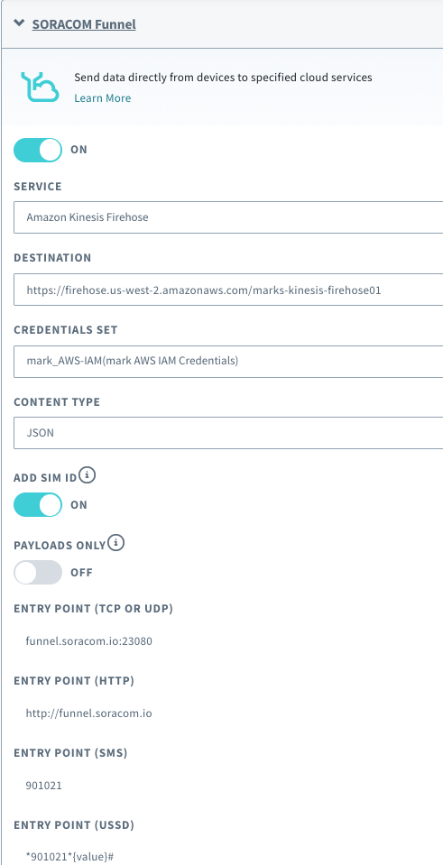 Connect Soracom Funnel to AWS Kinesis Firehose
